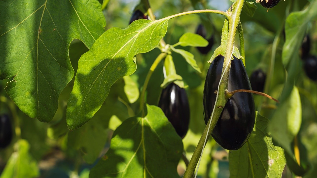 The varieties are many and differ for shape and colour. Aubergines can have a white, black or purple peel and even a striped mixed purple/white coloured peel. The shapes of the fruit can vary as well: rounded, oval, long or “segmented”.